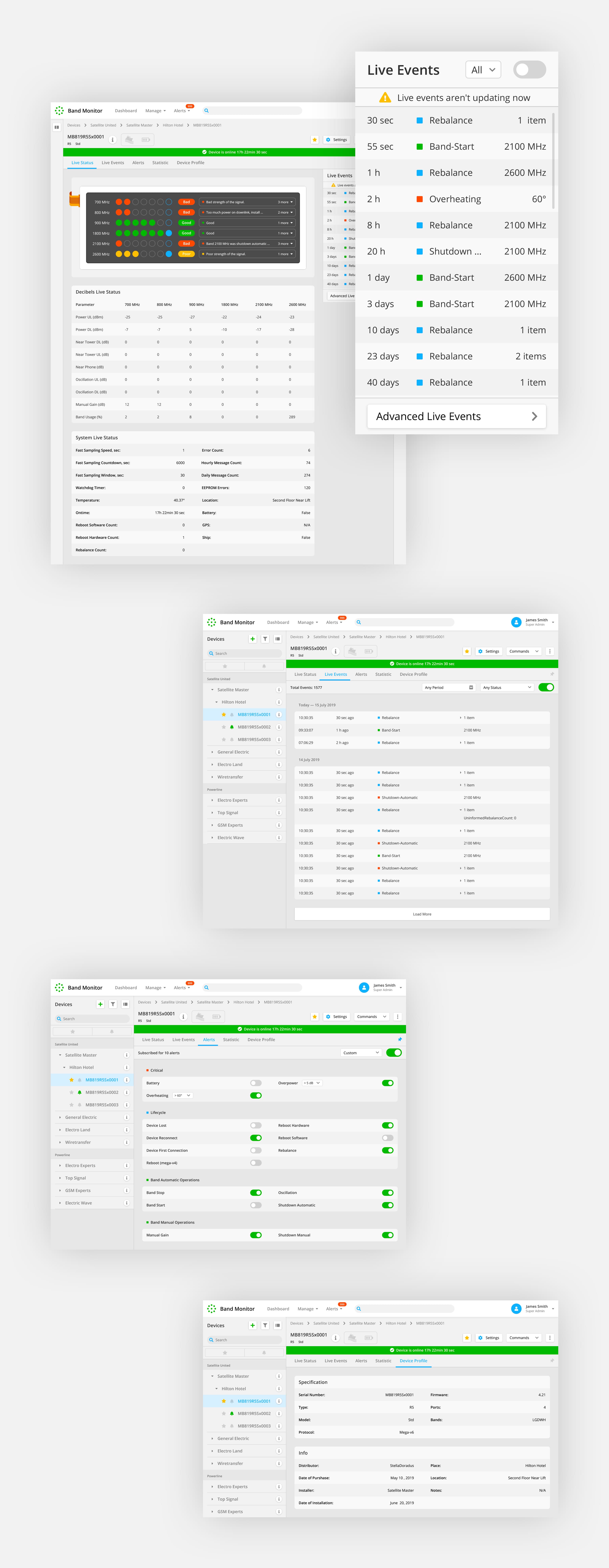 Web app UI/UX design for IoT system in the Republic of Ireland. Information architecture, user flows, wireframes, interactive prototype, unique icons and more than 20 screens were created.